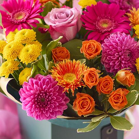 Perfectly formed, this classic autumn gift box will feature gorgeous blooms in bright vibrant shades like cerise and sunshine yellow.