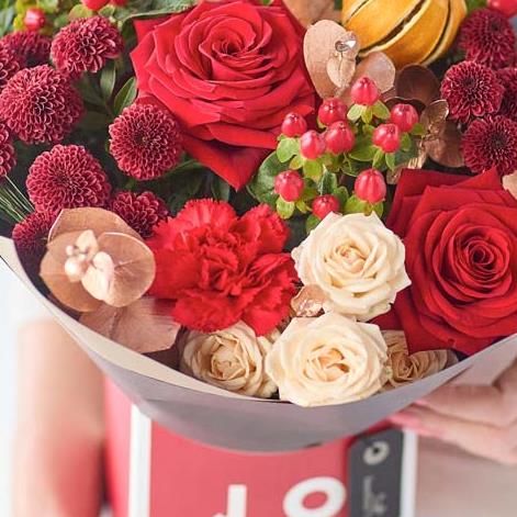 A lovely little gift box of fresh blooms in classic Christmassy colours, chosen and arranged by an expert local florist.